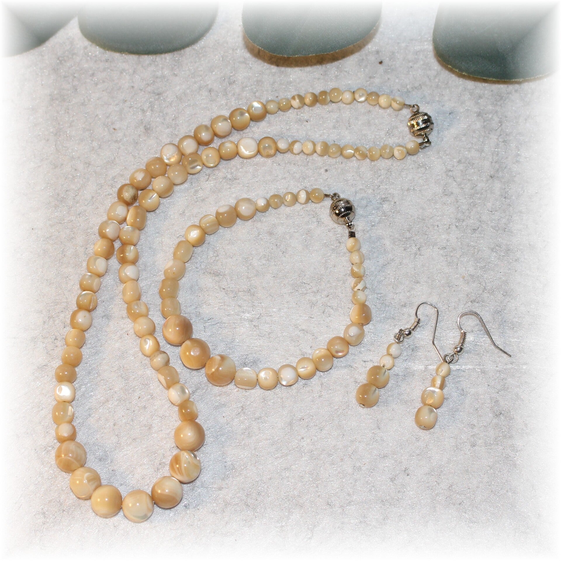 Mother of Pearl Necklace 17 1/4" With Magnetic Clasp, Bracelet 7 1/2" With Magnetic Clasp, and Earrings Set